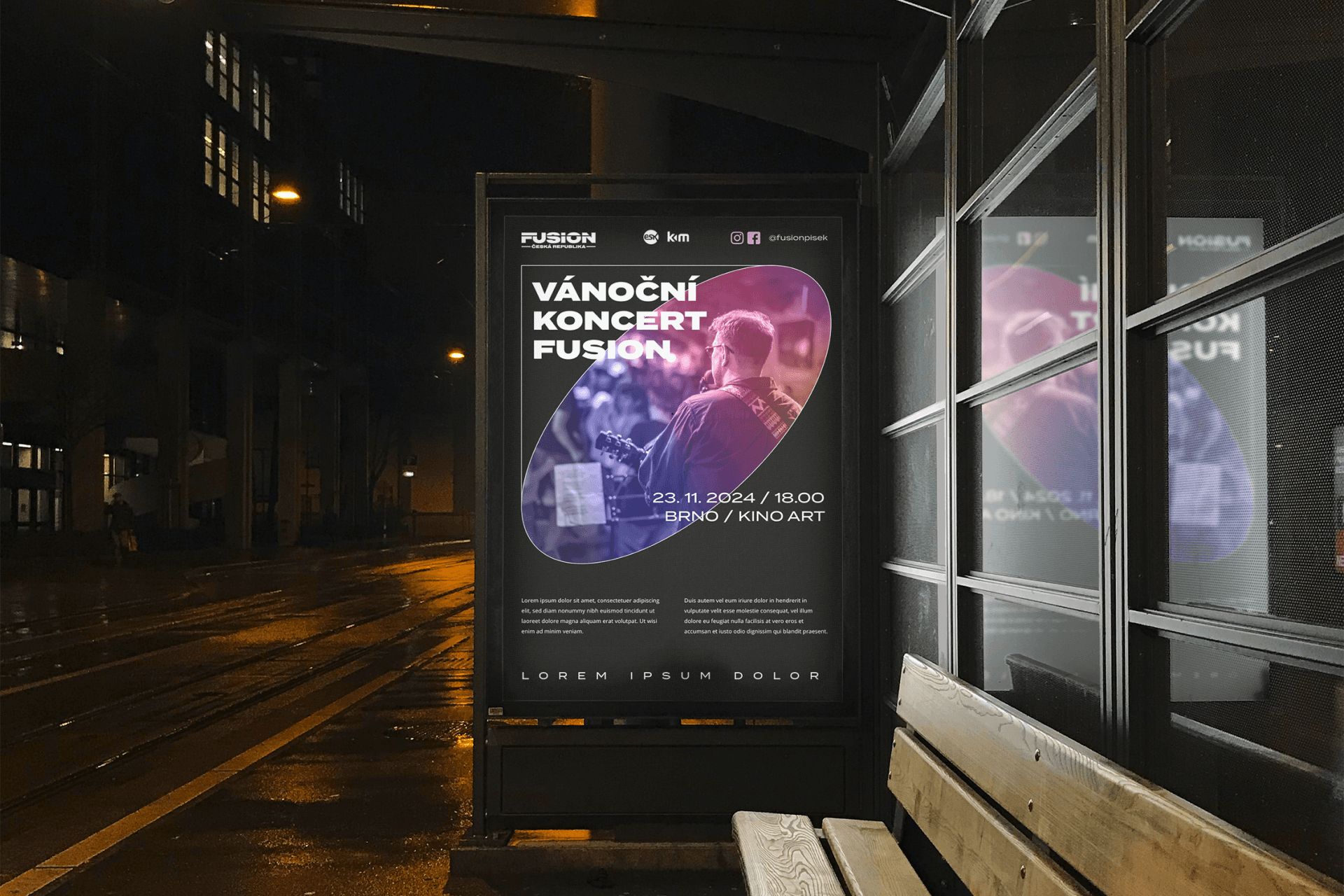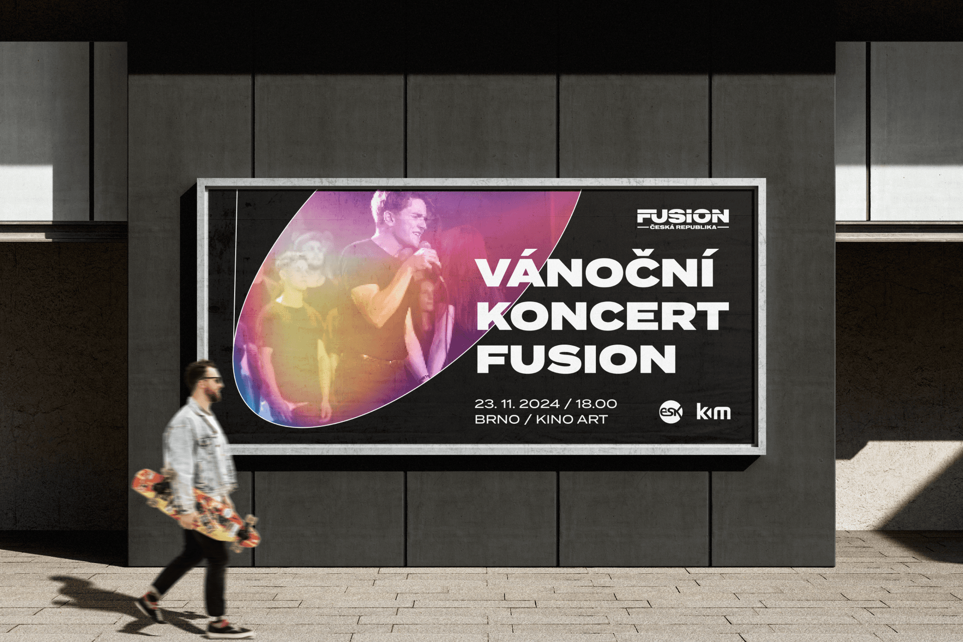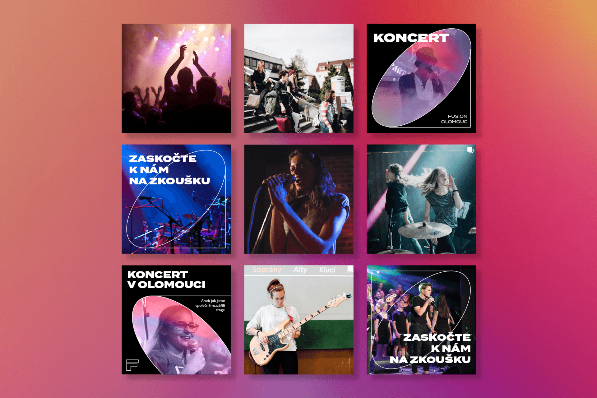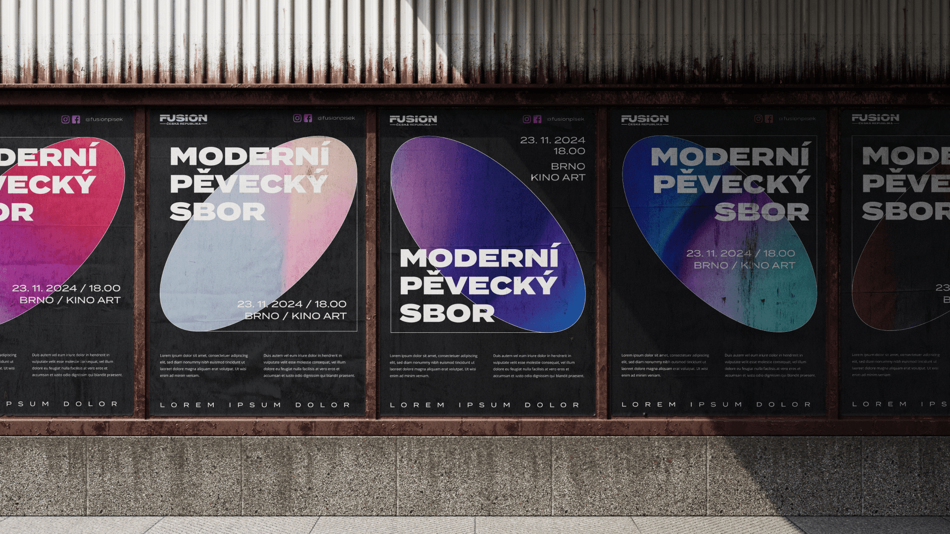 Pro tvorbu vizuálního stylu jsme si brali inspiraci přímo ze stage. Fusion sbory se pyšní nejen skvělou hudbou, ale i propracovanou produkcí, tak na stagy nechybí světelné efekty a kvalitní ozvučení a to se nám podařilo přetrasformovat v nosný prvek celé komunikace.
